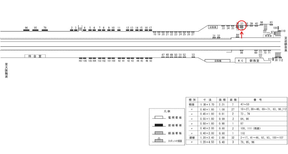 ○№95 ホーム上(近鉄奈良線 近鉄奈良方面ホーム) |