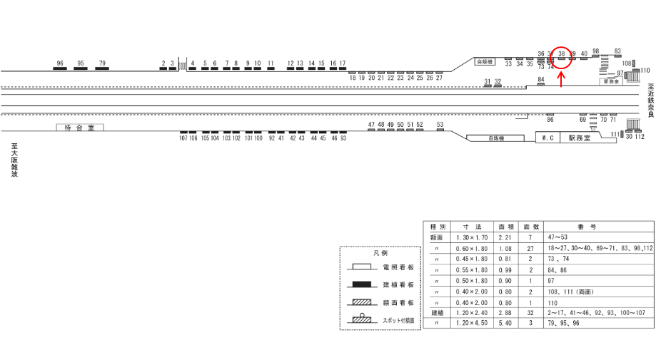 駅看板「近鉄 新大宮駅 №38」は近鉄 新大宮駅の改札内コンコースにある看板です。