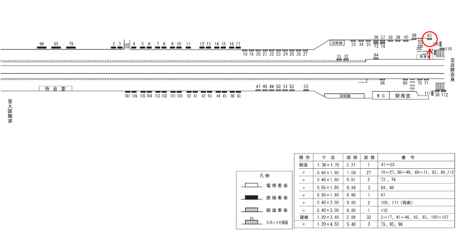 ○№95 ホーム上(近鉄奈良線 近鉄奈良方面ホーム) |