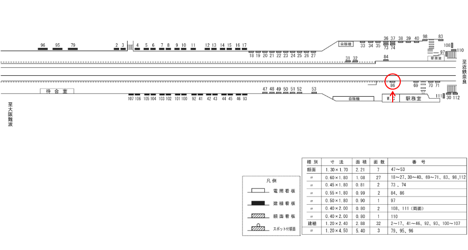 ○№95 ホーム上(近鉄奈良線 近鉄奈良方面ホーム) |