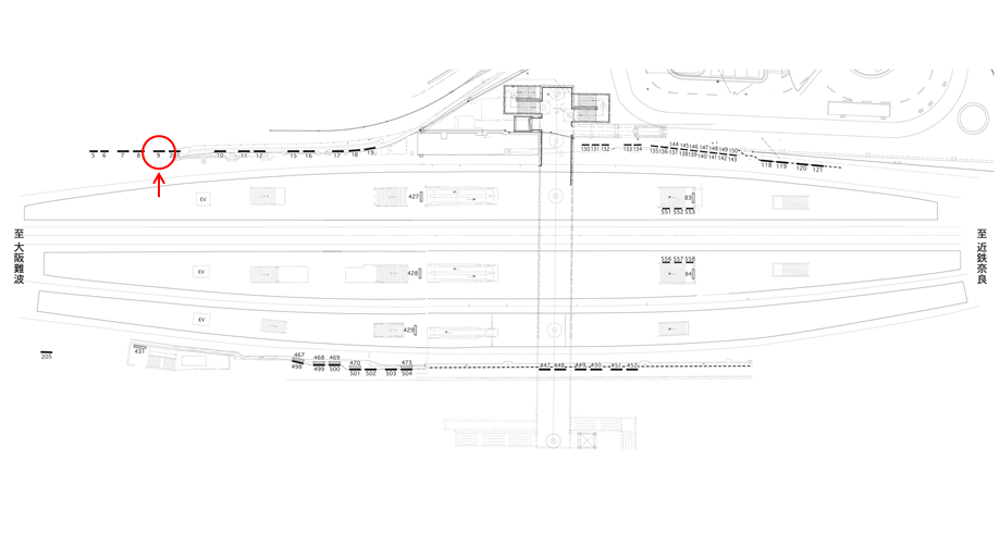 ○№300 ホーム上(ホーム階段正面 近鉄奈良線・橿原線ホーム) |