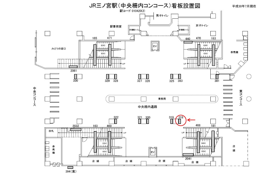 JR神戸線 三ノ宮駅の中央柵内通路に設置された駅広告(駅看板)です。