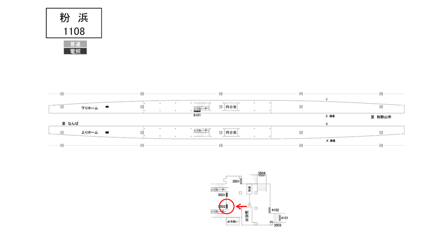 駅構内にある駅看板は「これから電車に乗る方」もしくは「駅を出る方」に見てもらえます。いずれにしても駅を利用するタイミングで広告に接触します。移動中に見てもらえる駅構内の駅看板は、粉浜駅の周辺にある店舗施設の紹介や道案内に利用されています。特に駅の出口付近にある駅看板は、店舗までの距離が近く案内看板に適しています。
