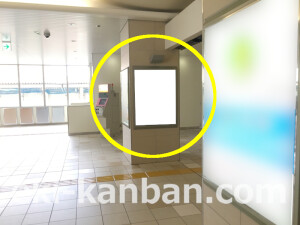 駅構内にある駅看板は「これから電車に乗る方」もしくは「駅を出る方」に見てもらえます。いずれにしても駅を利用するタイミングで広告に接触します。移動中に見てもらえる駅構内の駅看板は、羽衣駅の周辺にある店舗施設の紹介や道案内に利用されています。特に駅の出口付近にある駅看板は、店舗までの距離が近く案内看板に適しています。