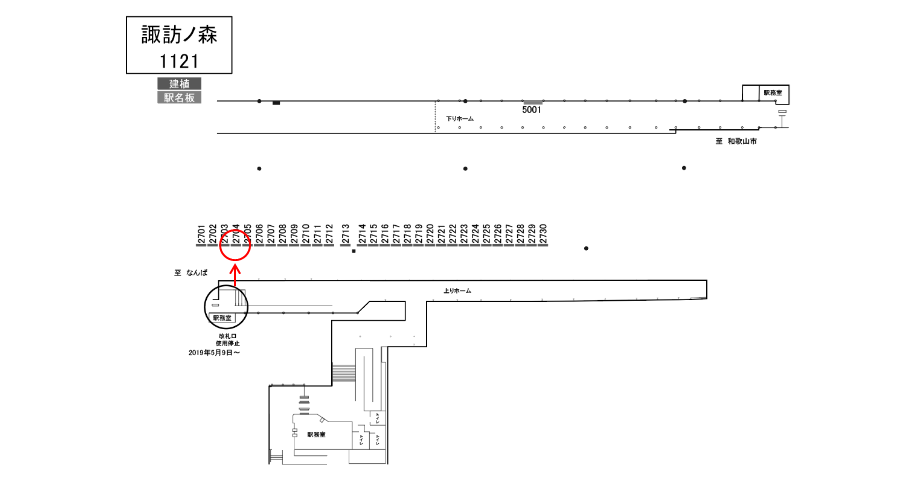 南海 諏訪ノ森駅のホームにある駅看板です。