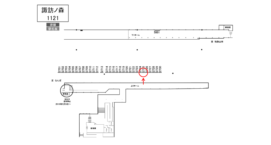 南海 諏訪ノ森駅のホームにある駅看板です。