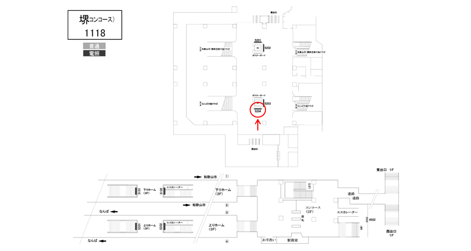 駅構内にある駅看板は「これから電車に乗る方」もしくは「駅を出る方」に見てもらえます。いずれにしても駅を利用するタイミングで広告に接触します。移動中に見てもらえる駅構内の駅看板は、堺駅の周辺にある店舗施設の紹介や道案内に利用されています。特に駅の出口付近にある駅看板は、店舗までの距離が近く案内看板に適しています。