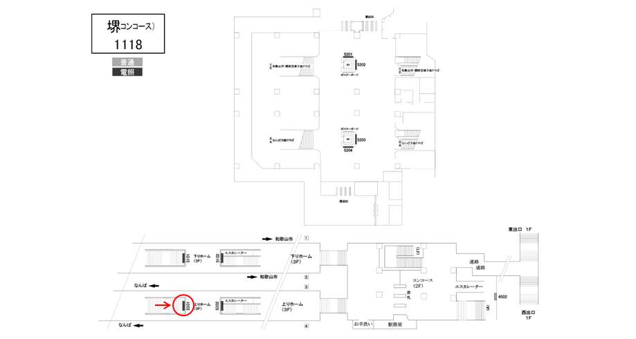 駅構内にある駅看板は「これから電車に乗る方」もしくは「駅を出る方」に見てもらえます。いずれにしても駅を利用するタイミングで広告に接触します。移動中に見てもらえる駅構内の駅看板は、堺駅の周辺にある店舗施設の紹介や道案内に利用されています。特に駅の出口付近にある駅看板は、店舗までの距離が近く案内看板に適しています。