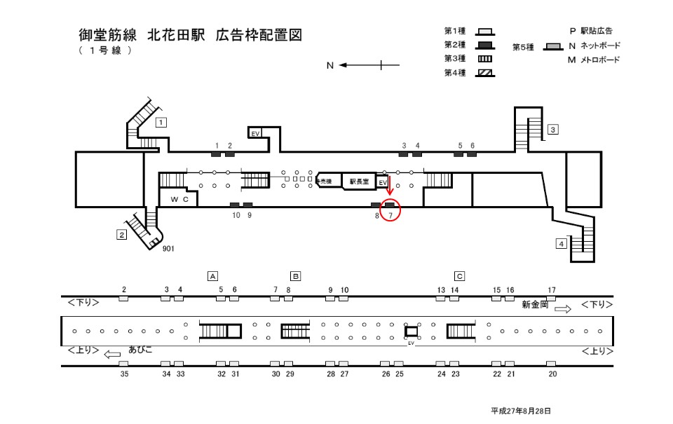 Osaka Metro 北花田駅、コンコースの駅広告(駅看板)設備のご紹介です。