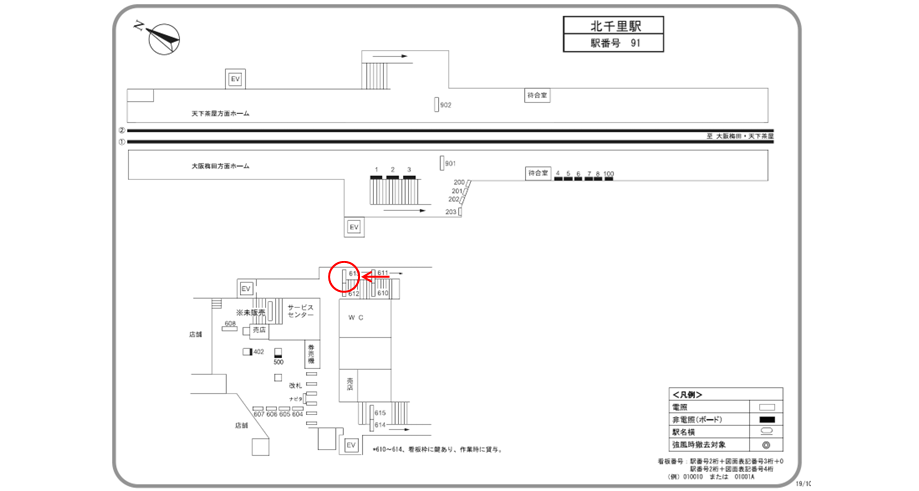 北千里駅の改札外コンコースにある広告看板です。改札を利用する人に見てもらえます。