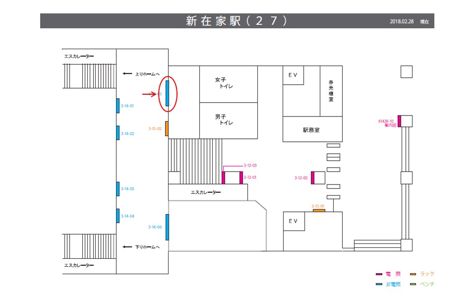 新在家駅の改札内コンコースに掲出する非電照タイプの看板となります。