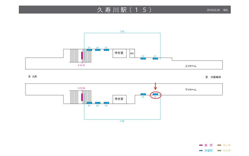 神戸三宮方面ホームご利用される方々はもちろん、大阪梅田方面ホームにて電車をお待ちの方々にも視認されます。