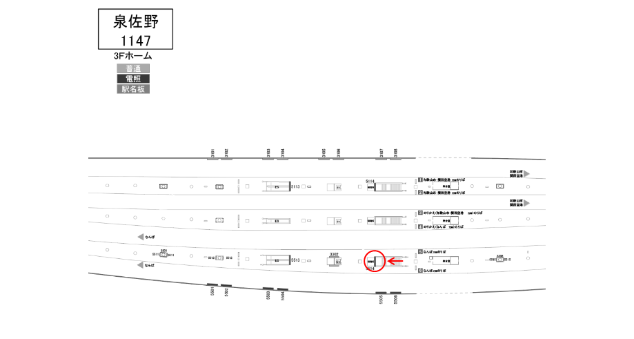 南海 泉佐野駅のホーム階段の正面にある駅看板です。