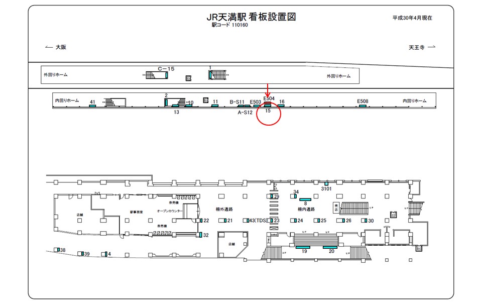 JR環状線天満駅のホームに掲出された看板です。