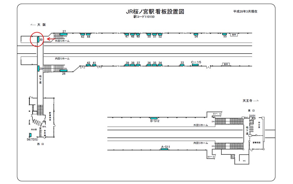 JR桜ノ宮駅 西口改札内通路に設置された広告看板です。