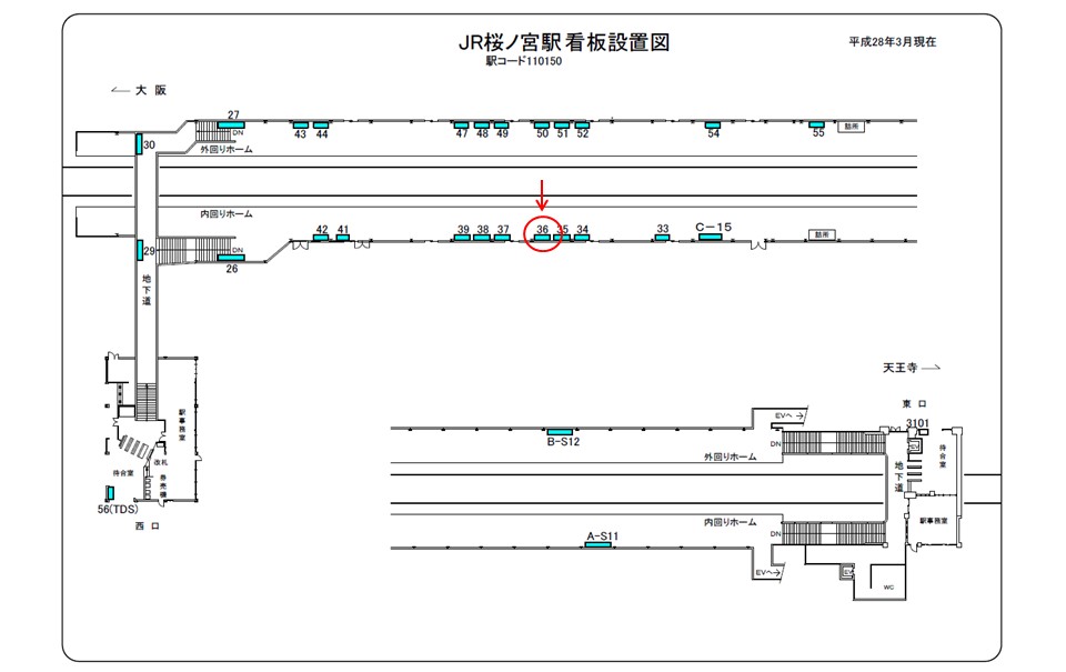 JR桜ノ宮駅 ホームに設置された広告看板です。