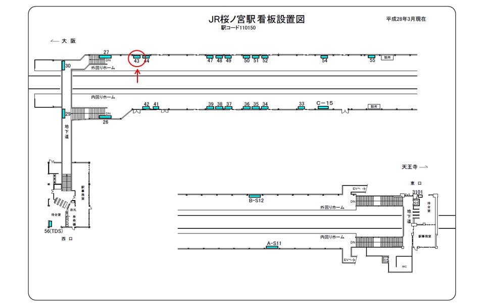 JR桜ノ宮駅 ホームに設置された広告看板です。