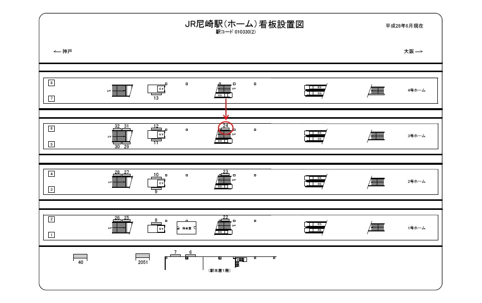 駅看板「JR 尼崎駅 №024」