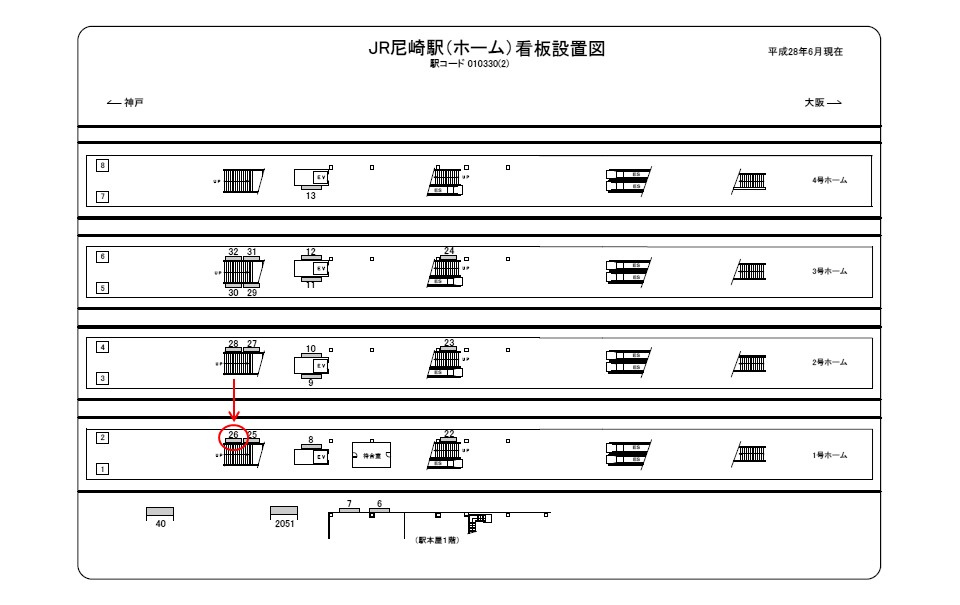 駅看板「JR 尼崎駅 №026」