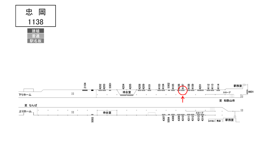 南海 忠岡駅のホームにある駅看板です。