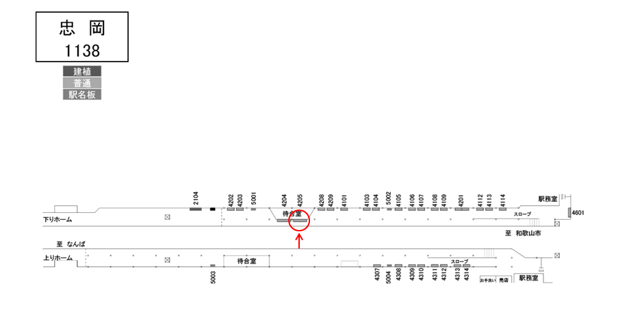 南海 忠岡駅のホームにある駅看板です。