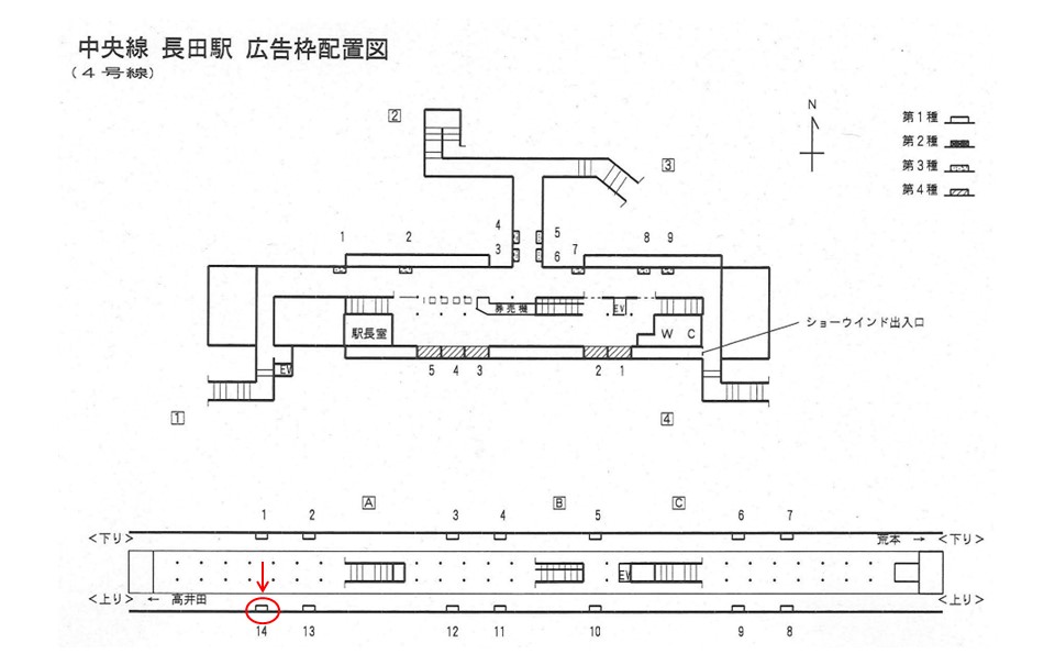 大阪市営地下鉄 中央線 長田駅のホームに設置された広告看板です。
