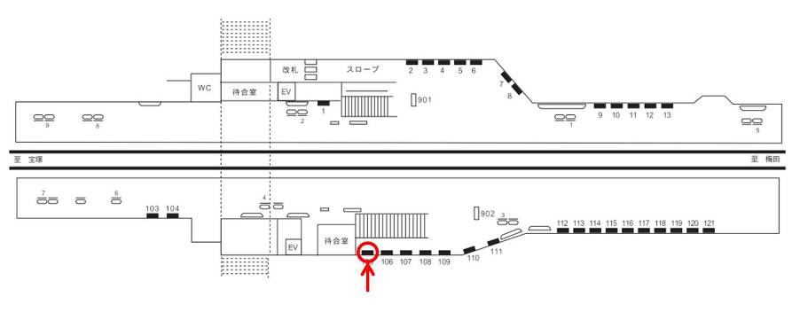 ホームに掲出されますので、宝塚方面をご利用の方々はもちろん、梅田方面をご利用の方々も電車のお待ちの方々からも御覧頂くことが可能です。