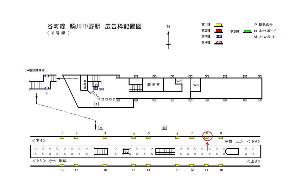 地下鉄駒川中野駅、ホームの駅広告(駅看板)設備のご紹介です。