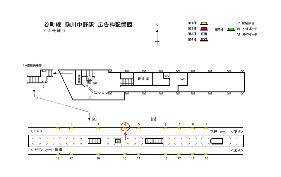 地下鉄駒川中野駅、ホームの駅広告(駅看板)設備のご紹介です。