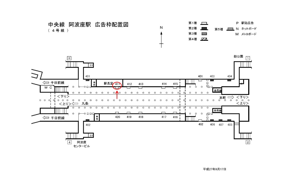 Osaka Metro中央線阿波座駅のホームに掲出された駅看板です。