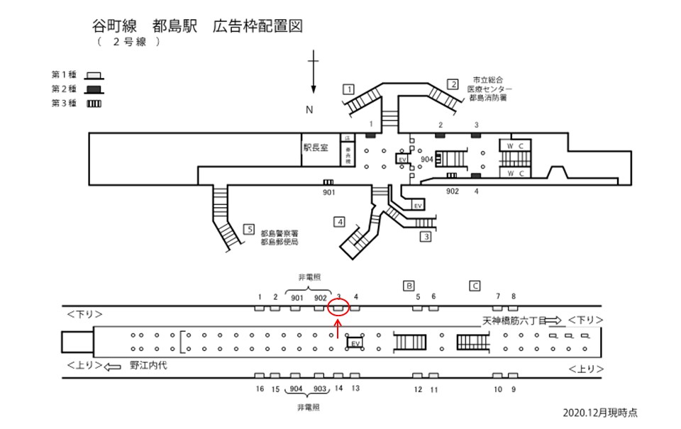 主に天神橋筋六丁目ホームにて電車をお待ちの方々に向けて視認されます。
