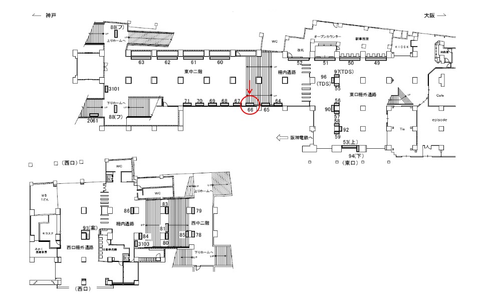 主にホーム、東口間を行き来される方々に視認されます。