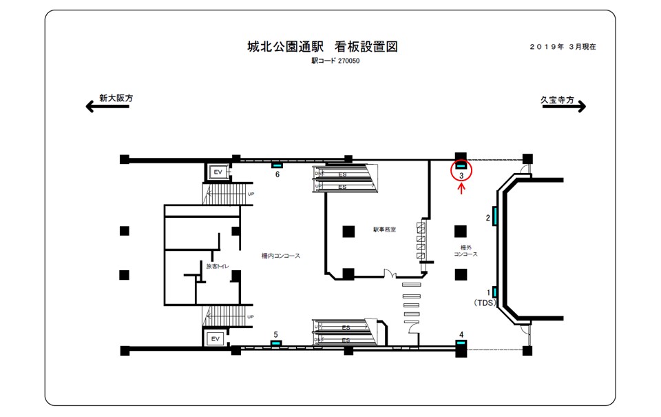 城北公園通駅の改札外コンコースに掲出された看板です。