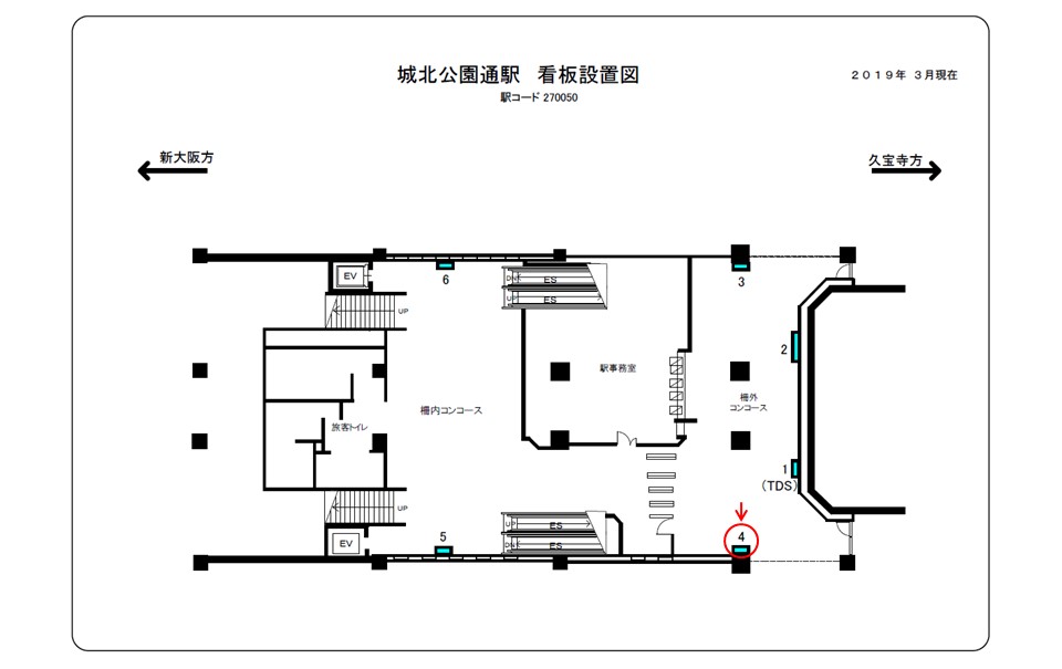 城北公園通駅の改札外コンコースに掲出された看板です。