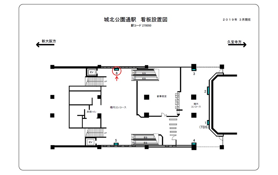 主に放出・久宝寺方面ホームと改札を行き来される方々に向けて視認されます。
