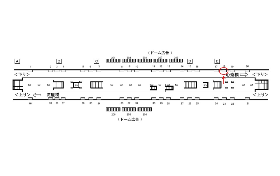 下りホーム(心斎橋方面)にて電車をお待ちの方々に向けて訴求することができます。