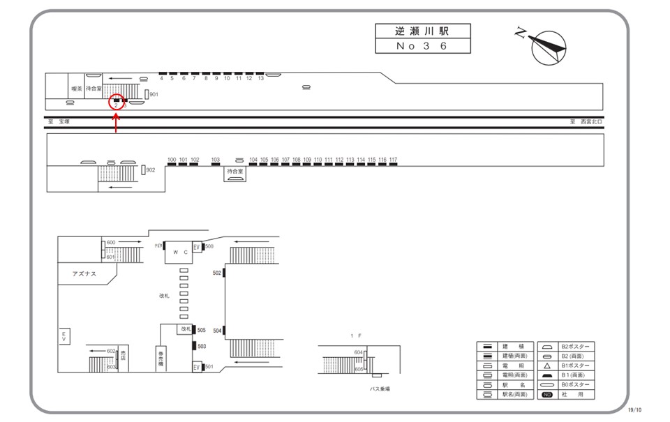 阪急今津線逆瀬川駅の西宮北口方面行きホーム壁面に設置されています。