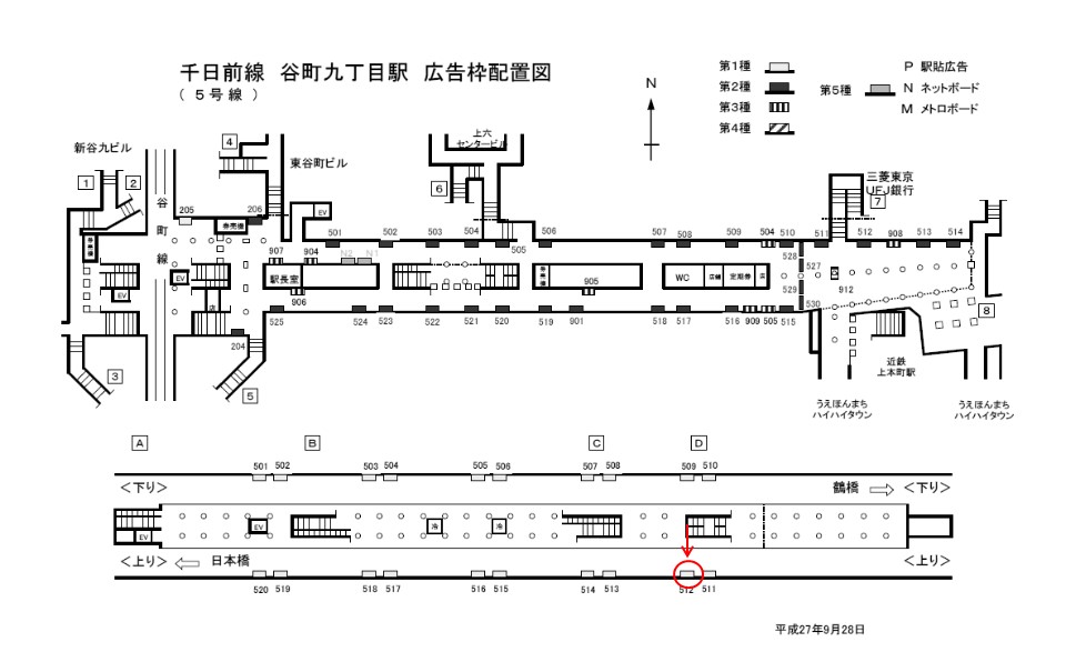 地下鉄千日前線谷町九丁目駅、ホームの駅広告(駅看板)設備のご紹介です。