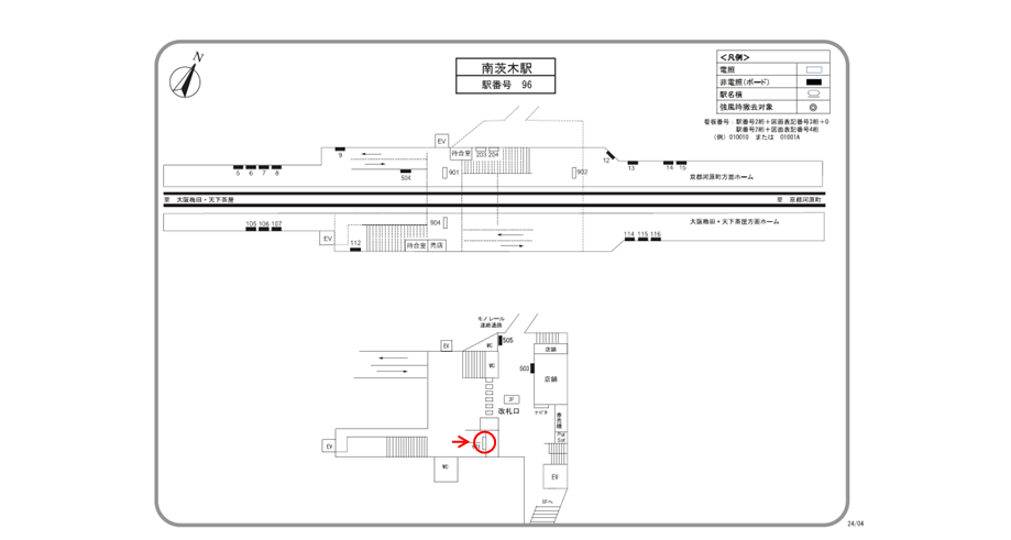 南茨木駅の改札内コンコースにある広告看板です。淡路・十三・大阪梅田・天下茶屋方面ホームと改札を行き来する人に見てもらえます。