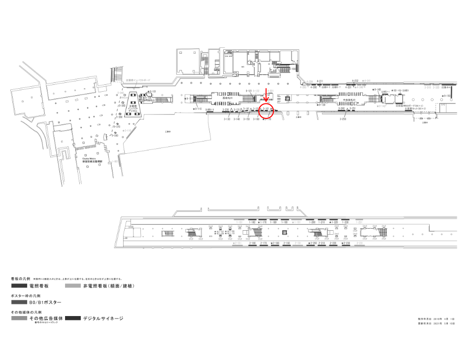 駅構内にある駅看板は「これから電車に乗る方」もしくは「駅を出る方」に見てもらえます。いずれにしても駅を利用するタイミングで広告に接触します。移動中に見てもらえる駅構内の駅看板は、淀屋橋駅の周辺にある店舗施設の紹介や道案内に利用されています。特に駅の出口付近にある駅看板は、店舗までの距離が近く案内看板に適しています。