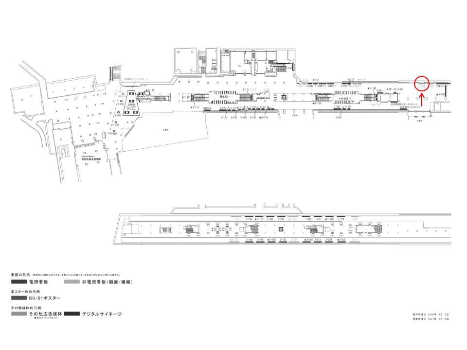 駅構内にある駅看板は「これから電車に乗る方」もしくは「駅を出る方」に見てもらえます。いずれにしても駅を利用するタイミングで広告に接触します。移動中に見てもらえる駅構内の駅看板は、淀屋橋駅の周辺にある店舗施設の紹介や道案内に利用されています。特に駅の出口付近にある駅看板は、店舗までの距離が近く案内看板に適しています。