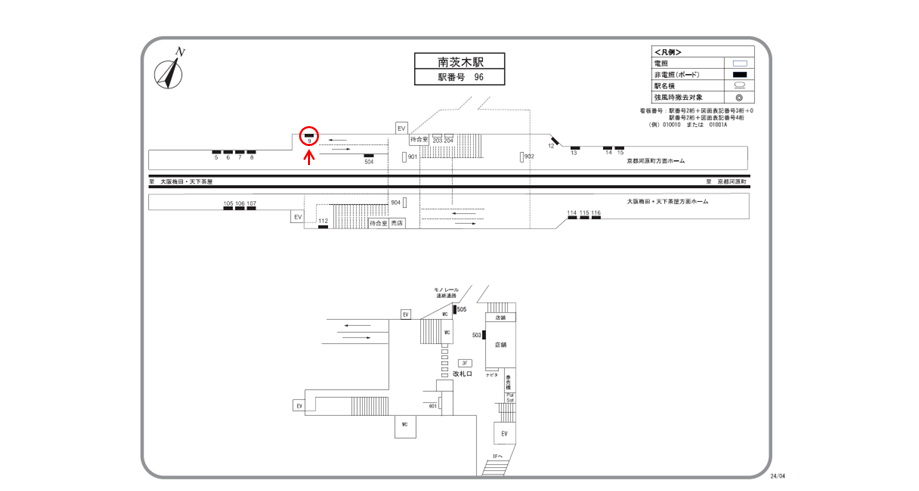 南茨木駅の改札内コンコースにある広告看板です。淡路・十三・大阪梅田・天下茶屋方面ホームと改札を行き来する人に見てもらえます。