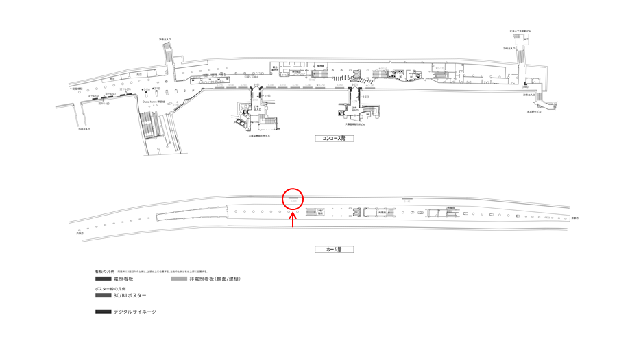 ホーム看板は電車を待っている駅利用者に見てもらえます。待ち時間を使った接触時間の長い広告です。接触時間を長く取れるホーム看板は広告の内容を理解してもらいやすいことから、企業広告やサービス・商品紹介の周知に利用されています。駅を毎日使う「北浜駅に生活基盤をもつ方」を対象とした広告にオススメです。