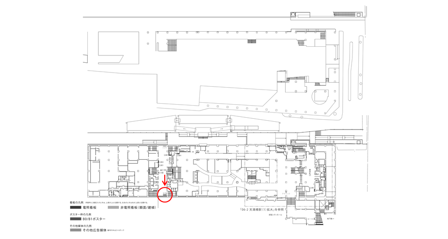 駅構内にある駅看板は「これから電車に乗る方」もしくは「駅を出る方」に見てもらえます。いずれにしても駅を利用するタイミングで広告に接触します。移動中に見てもらえる駅構内の駅看板は、天満橋駅の周辺にある店舗施設の紹介や道案内に利用されています。特に駅の出口付近にある駅看板は、店舗までの距離が近く案内看板に適しています。