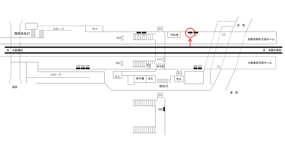 西京極駅のホーム上にある広告看板です。桂・高槻市・大阪梅田・天下茶屋方面の電車を待つ人に見てもらえます。