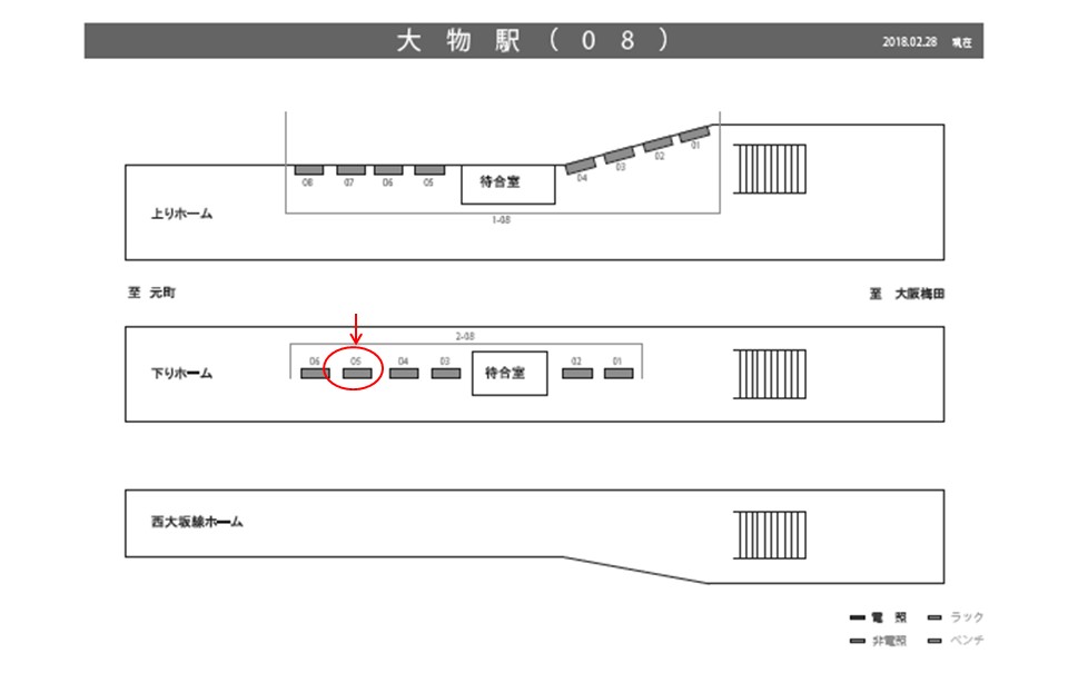 阪神大物駅下りホーム中間部に設置された非電照看板のご紹介です。