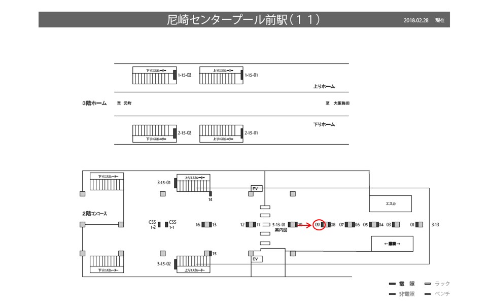 阪神尼崎センタープール前駅改札外コンコースに設置された電照看板のご紹介です。