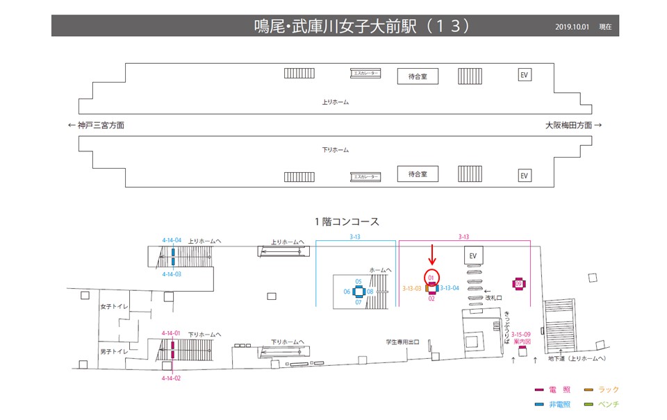 鳴尾・武庫川女子大学前駅の改札内コンコースに掲出する電照タイプの看板となります。