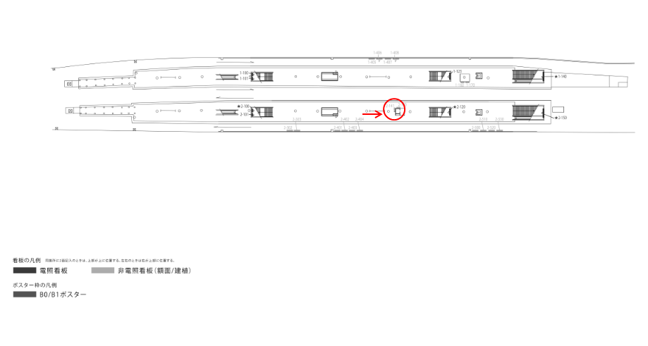 ○№2-110 改札内コンコース(ホーム階段正面 西改札口側) |