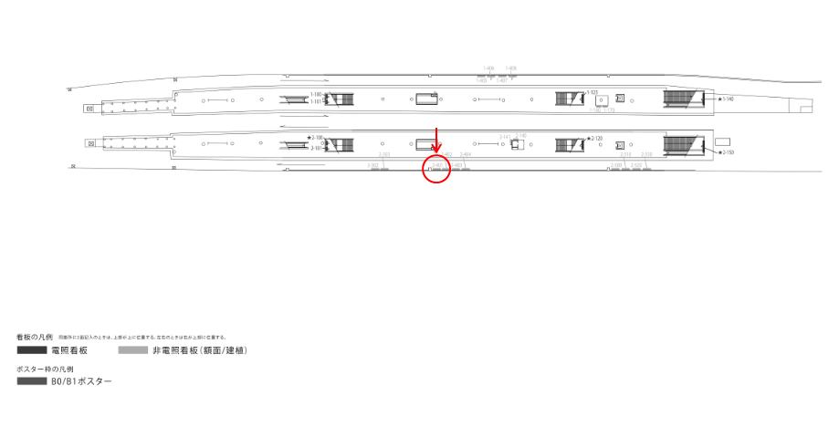 ○№2-110 改札内コンコース(ホーム階段正面 西改札口側) |